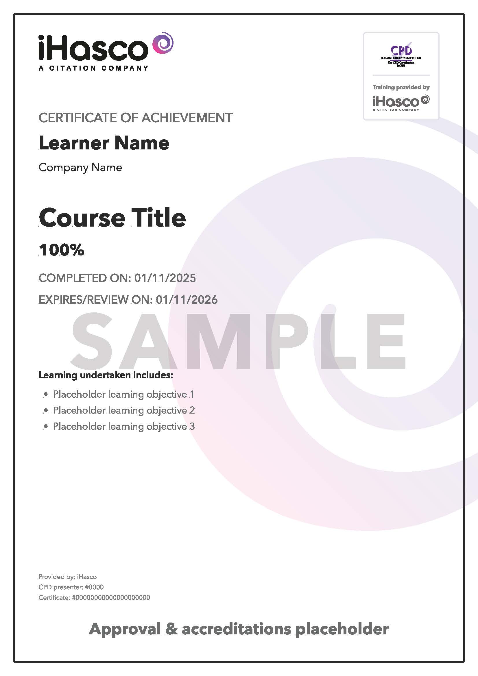 Please note if you are using our course content via SCORM in a third party LMS then we are unable to provide certificates and you will need to generate these in your host LMS yourself.
